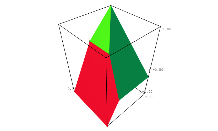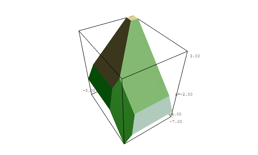 | Figure 5. Tropical Curve of $-2x^2 + -1x + \frac{1}{2}y$ | Figure 6. Graph of $-2x^2 + -1x + \frac{1}{2}y$ |