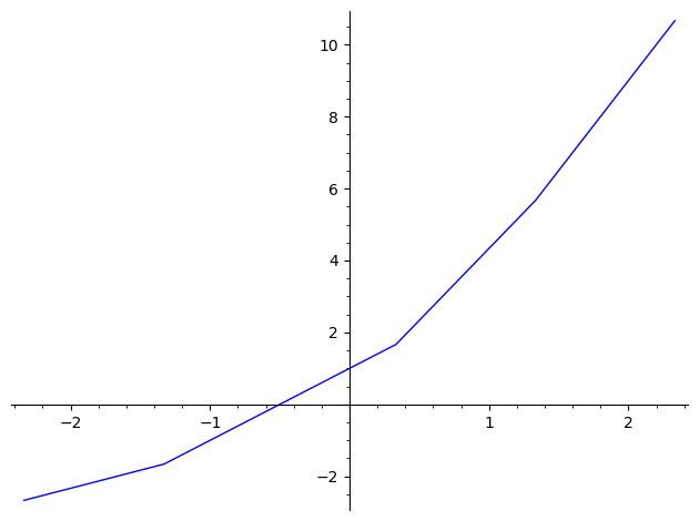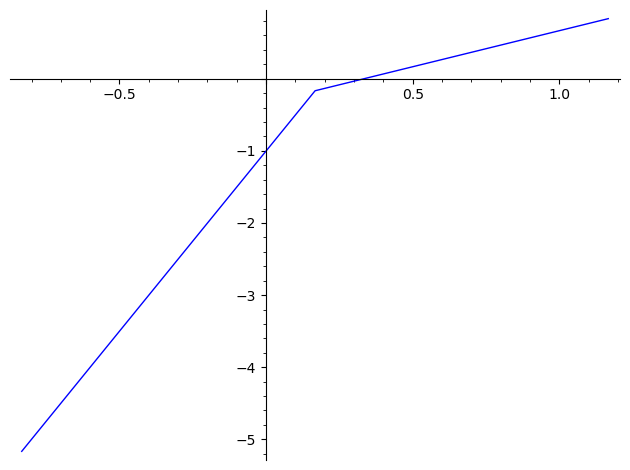 | Figure 3. Graph of $-1x^5 + \frac{1}{3}x^4 + 1x^2 + \frac{1}{3}x$ (max-plus algebra) | Figure 4. Graph of $-1x^5 + \frac{1}{3}x^4 + 1x^2 + \frac{1}{3}x$ (min-plus algebra) |