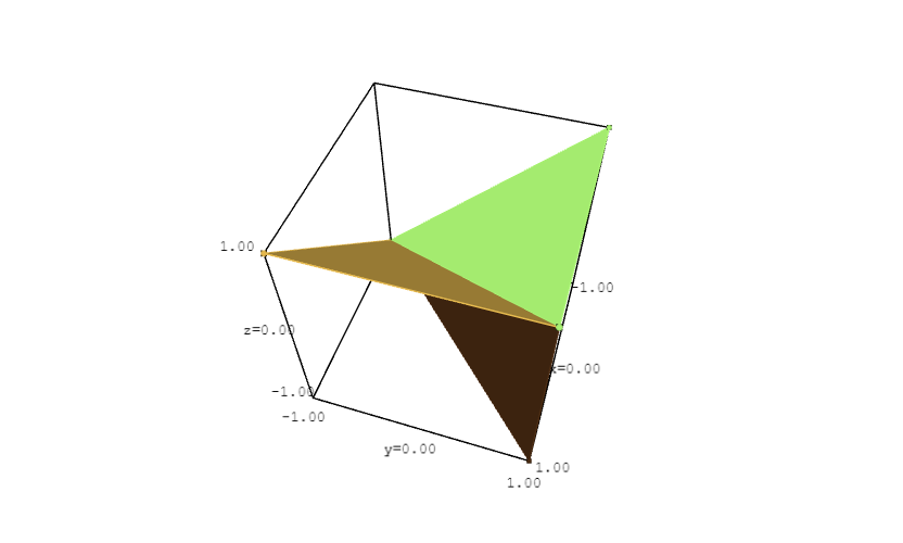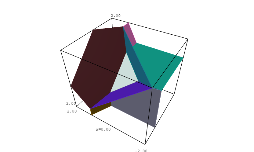 | Figure 9. Tropical Surface of $0x + 0y + 0z$ | Figure 10. Tropical Surface of $0x^2 + 0xyz + 0x + 0y + 0z + 1$ |